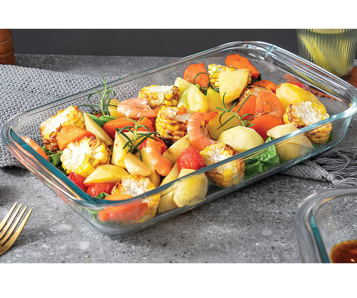 Πυρίμαχο ορθογώνιο ταψί από γυαλί υψηλής ποιότητας για τέλεια αποτελέσματα στο μαγείρεμα και αντοχή στις υψηλές θερμοκρασίες.