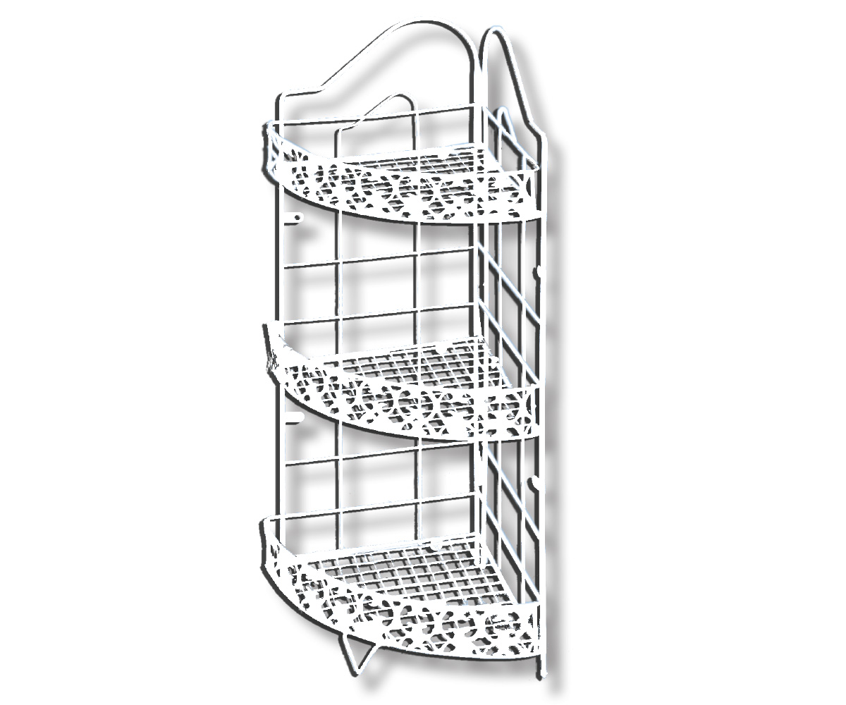 Εταζέρα μπάνιου γωνιακή 3 επιπέδων, με πλαστικοποιημένη λευκή επίστρωση. Πρακτική λύση για το μπάνιο, μπορεί να τοποθετηθεί σε οποιοδήποτε τοίχο και να λειτουργήσει ως βοηθητικός ή αποθηκευτικός χώρος. Ιδανικό σε περιπτώσεις που η εξοικονόμηση χώρου είναι σημαντική, κρατώντας το μπάνιο σας τακτοποιημένο κάθε στιγμή!