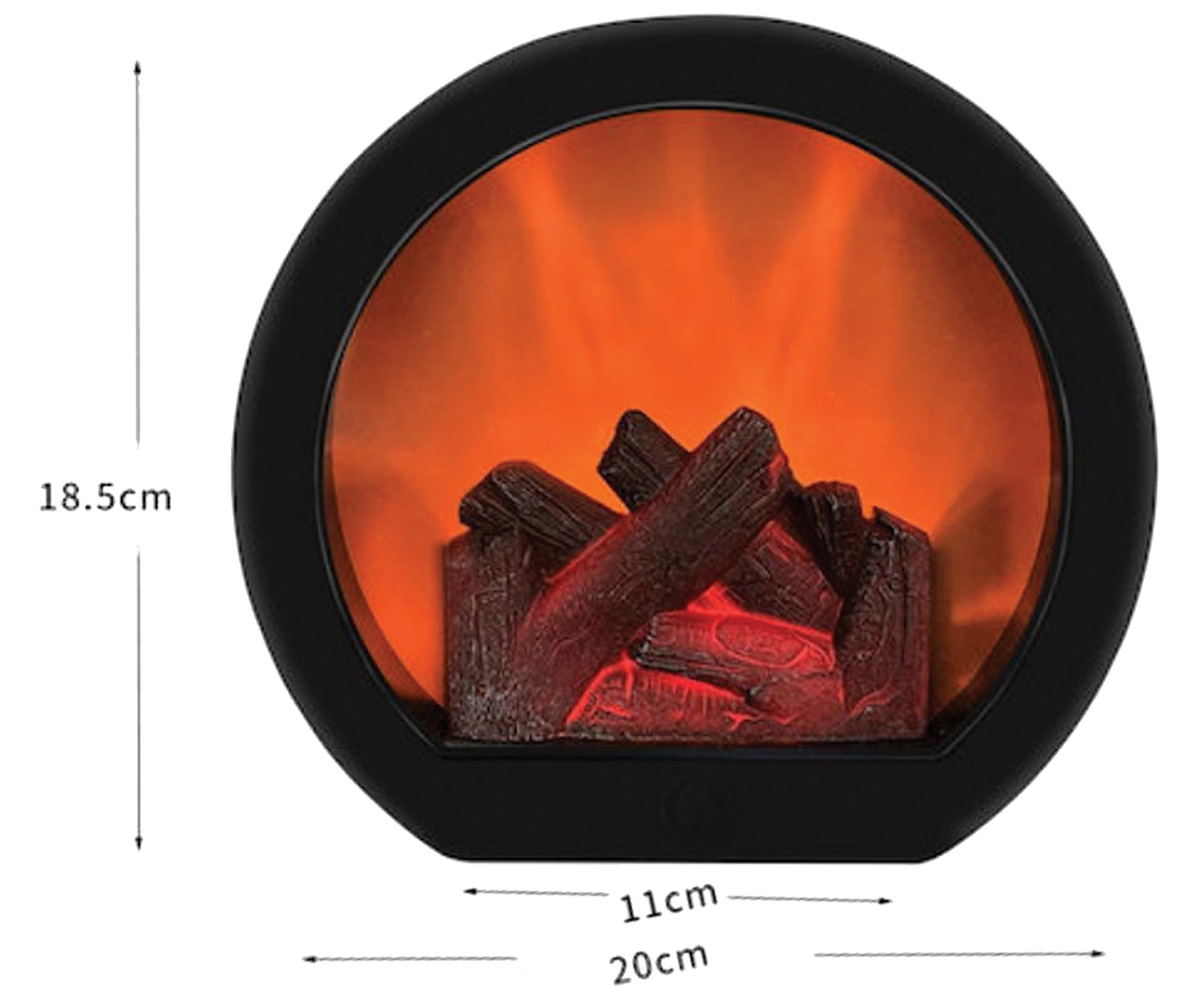 Διακοσμητικό φωτιστικό με εφέ φλόγας τζακιού σε μαύρο χρώμα.