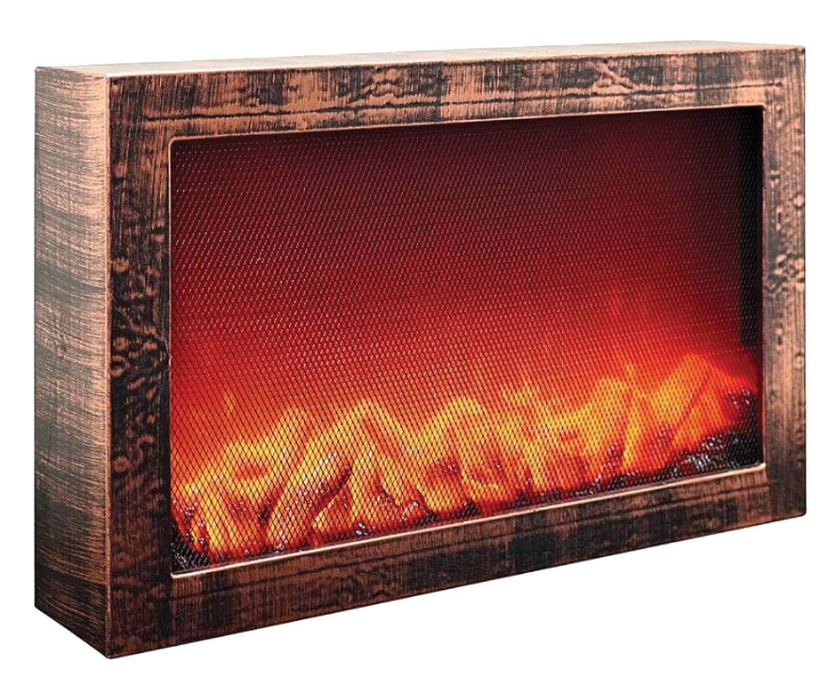 "Διακοσμητικό φωτιστικό με εφέ φλόγας τζακιού σε μπρονζέ χρώμα.