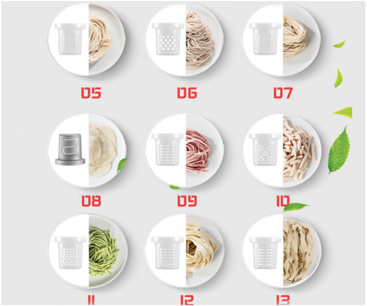 Η ηλεκτρική μηχανή ζυμαρικών έρχεται με 13 διαφορετικά σχήματα