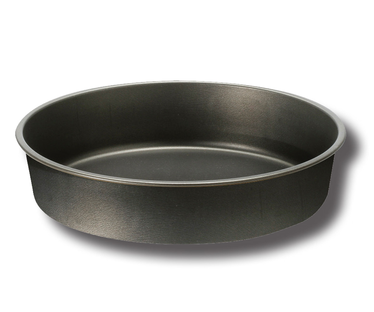 Βαθύ στρογγυλό ταψί σε μαύρο χρώμα κατασκευασμένο από ανθρακούχο χάλυβα πάχους 1.5mm που προσφέρει ομοιόμορφο ψήσιμο λόγω της κατανομής πάχους. Διαθέτει 5πλή αντικολλητική επίστρωση, 20 micron.